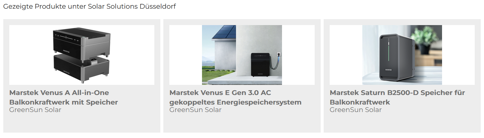 Von Mittwoch, 03. Dezember, bis Donnerstag, 04. Dezember 2025, stellt GreenSun Solar auf der Fachmesse Solar Solutions Düsseldorf in der Messe Düsseldorf aus.